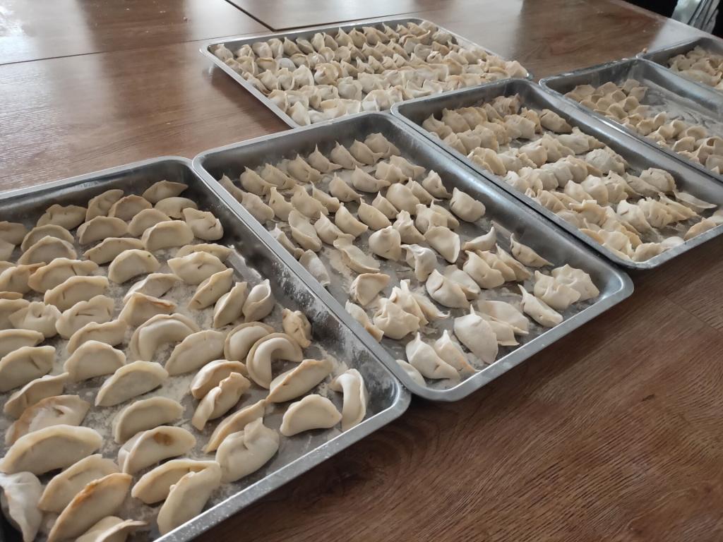 下午3点,同学们准时在学校食堂三楼大厅集合,在做好清洁工作后,大家围坐在餐桌旁,开始包水饺,分工合作,齐心协力,你擀皮,我包馅,双手交叠之间,精致的饺子一个个成型。随后,老师们也赶来了,现场热闹而温暖。