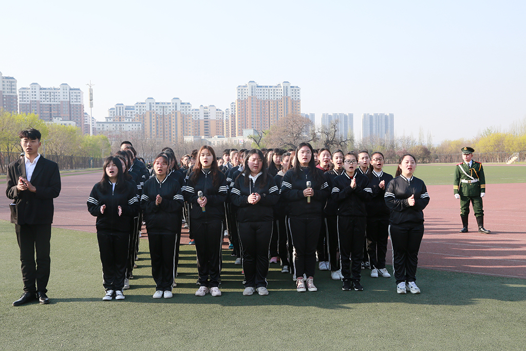 7:20国旗护卫队迈着矫健的步伐,一路护送国旗至田径场。7:30伴随着庄严的国歌,五星红旗冉冉升起,迎风飘扬。在场的每一个人深怀着对祖国无限的热爱和崇高的敬意注目国旗,齐唱国歌。升旗仪式结束后创新创业学院学生代表发表了以“追忆先烈,聚力前行”为主题的演讲,随后全体学生合唱了《我们都是追梦人》,同学们激情昂扬,展示了新时代青年的积极向上的精神面貌。