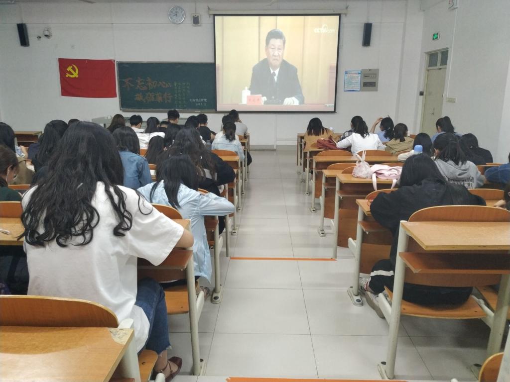 同学们认真观看了习总书记在纪念五四运动100周年大会上的讲话视频。习总书记在讲话中强调,五四运动以来的100年,是中国青年一代又一代接续奋斗、凯歌前行的100年,是中国青年用青春之我创造青春之中国、青春之民族的100年。新时代中国青年运动的主题,新时代中国青年运动的方向,新时代中国青年的使命,就是坚持中国共产党领导,同人民一道,为实现“两个一百年”奋斗目标、实现中华民族伟大复兴的中国梦而奋斗。他还对新时代中国青年提出了要求,要树立远大理想,要热爱伟大祖国,要担当时代责任,要勇于砥砺奋斗,要练就过硬本领,要锤炼品德修为。