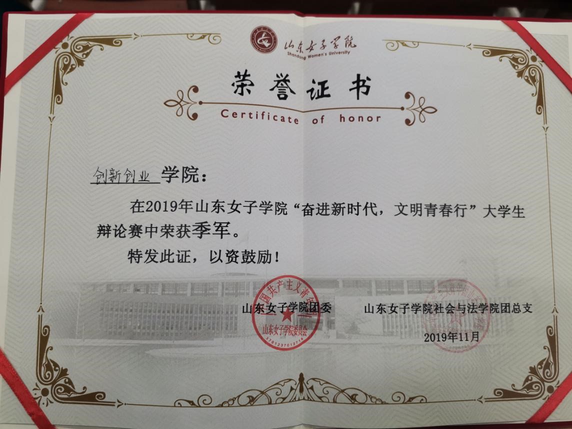 一人之辩重于九鼎之宝,三寸之舌强于百万之师。辩论不只是口才与表达而是思想的碰撞和交流。11月21日,“奋进新时代,声动青春行”大学生辩论赛在博文楼308精彩落幕,创新创业学院喜获佳绩。