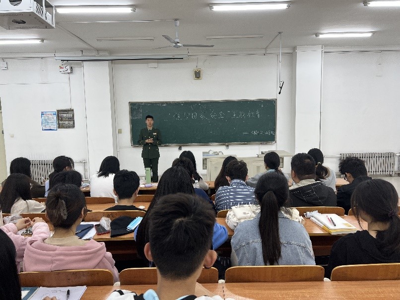 依托学院“党员先锋岗”,邀请退伍复学的省优秀学生干部侯旭同学结合典型案例,面向2022级学生开展理论宣讲志愿服务活动,深入宣传习近平总书记关于总体国家安全观和国家安全工作的重要论述,介绍新时代国家安全变革及成就,普及国家安全相关法律法规知识,引导同学们充分认识坚持总体国家安全观、维护国家安全的丰富内涵和重大意义。