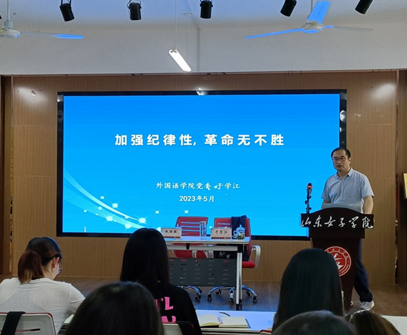 于学江书记以《加强纪律性,革命无不胜》为主题进行培训。他首先从苏联解体的教训表明了严明党的纪律的重要性,接着通过回顾了党的纪律的历史,指出了党的纪律在各个发展时期起到了政治保障和促进作用,随后又结合同学们的身边案例,强调了纪律和自由的辩证关系,最后对学生骨干们提出要求,希望大家应该做有责任心的人,发挥模范带头作用,团结带领广大同学自觉遵守纪律,并能主动作为,把维护纪律的责任扛在肩上,为创建和谐美丽的女院贡献青春力量。