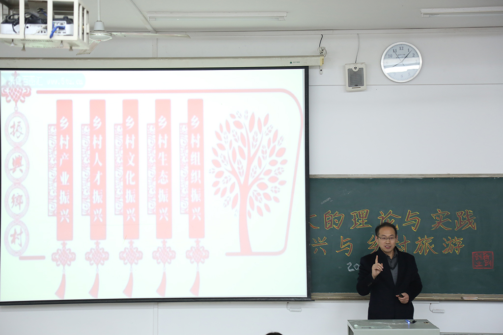 为进一步引导我院学生学习贯彻党的十九大精神,全面理解和把握乡村振兴战略,11月26日,在博文楼103教室,创新创业学院院长李厚忠为同学们作了以“十九大的理论与实践——乡村振兴与乡村旅游”为主题的专题讲座,学院全体学生聆听了讲座。