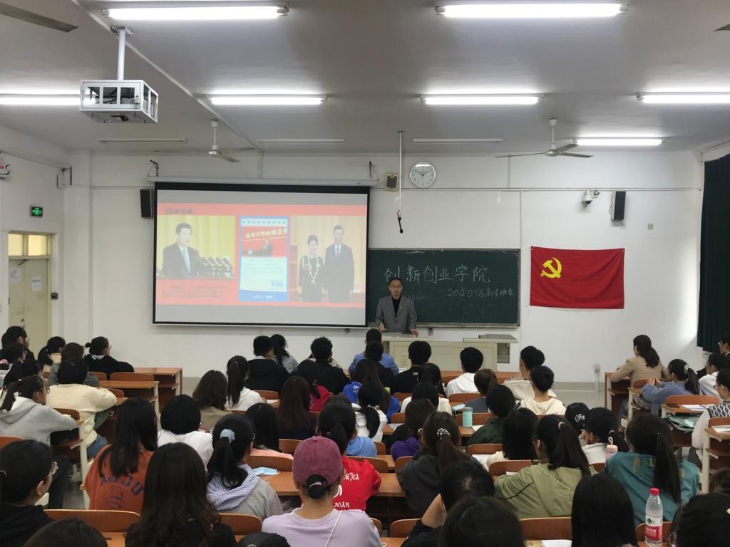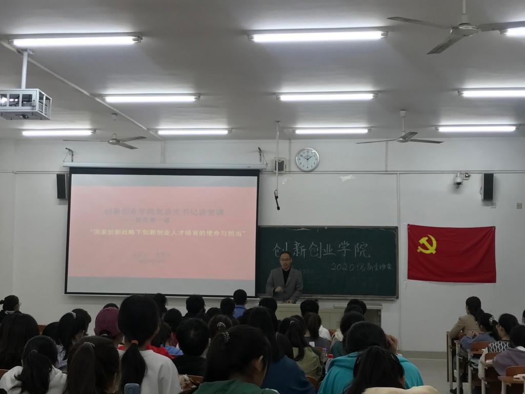 10月11日上午9时,创新创业学院党总支书记兼院长李厚忠同志在博文楼202为2020级85名新生讲授开学第一课,开展“国家创新战略背景下创新创业人才培育的使命与担当”主题党课教育。