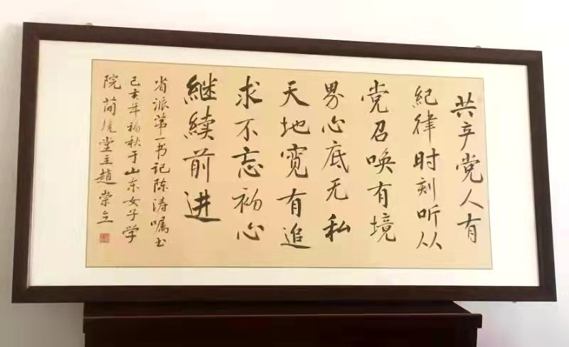 “共产党人有纪律,时刻听从党召唤,有境界,心底无私天地宽,有追求,不忘初心继续前进。