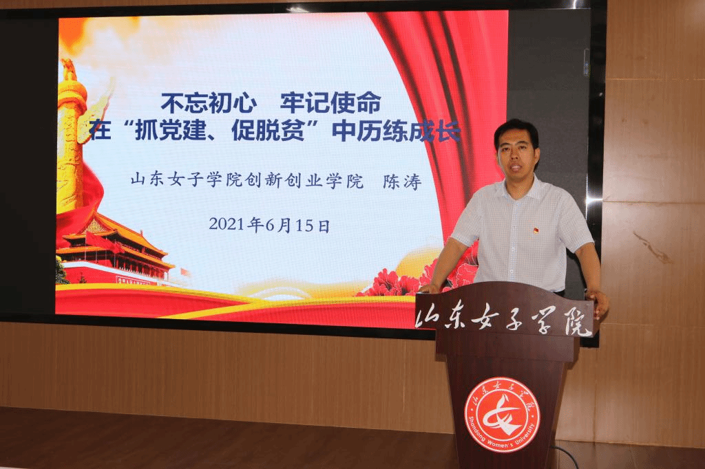 为深入开展党史学习教育,喜迎中国共产党建党100周年,6月15日下午,创新创业学院党总支副书记陈涛在实训楼322路演厅以《不忘初心牢记使命,在“抓党建、促脱贫”中历练成长》为主题,为全体学生党员和入党积极分子做党课宣讲。