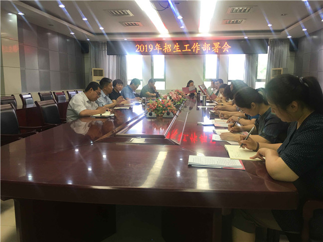 6月11日上午,学校在办公楼第三会议室召开2019年招生工作部署会,各学院主要负责人和招生就业处全体人员参加会议,校长盛国军出席会议并讲话,副校长侯素美主持会议。