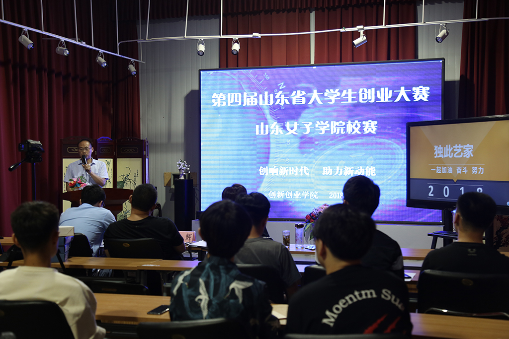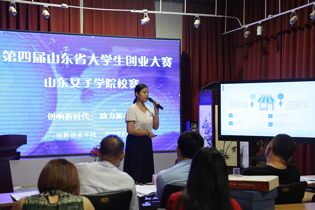 2018年6月22日,第四届山东省大学生创业大赛山东女子学院校赛在大学生创新创业基地隆重举行。创新创业学院李厚忠院长主持赛事,来自学校教务处、创新创业学院、企业的创新创业导师担任评委。