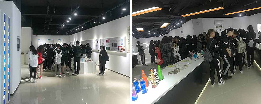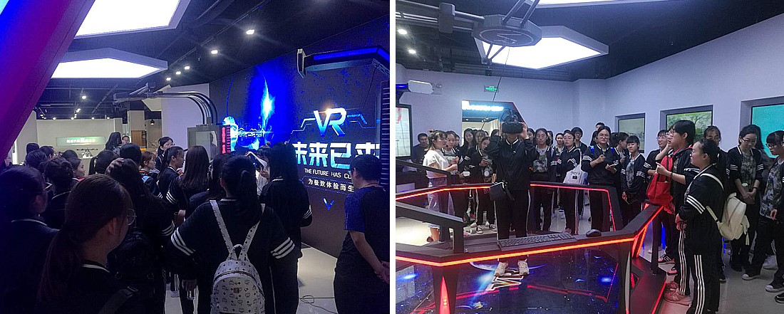 在创新大厦二楼高校展区,园区工作人员向同学们介绍了各大高校的科研成果。同学们一一参观了展厅内摆放的科研产品,仔细阅读产品功能,对不懂的产品,一边听解说,一边提问题。尤其是在VR体验区,同学门对这种新兴科技表现出浓厚的兴趣,排队亲自体验,在惊奇和欢呼中,感受科技的魅力。