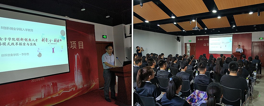 参观完高校科研产品展之后,在创新大厦会议室举行创新创业学院新生入学教育,园区各位领导莅临会议并给各位同学祝以美好的祝福。创新创业学院李厚忠院长在会议上发表了重要讲话:创新创业是国之大事,从中央到地方,从高校到企业,创新创业都占据着重要的地位。李院长鼓励各位同学无论在生活还是学习中,都要进行创新创业。最后李院长详细介绍了创新创业的学院概况、师资情况、京东合作实验室、校企联合办学以及创新创业基地。