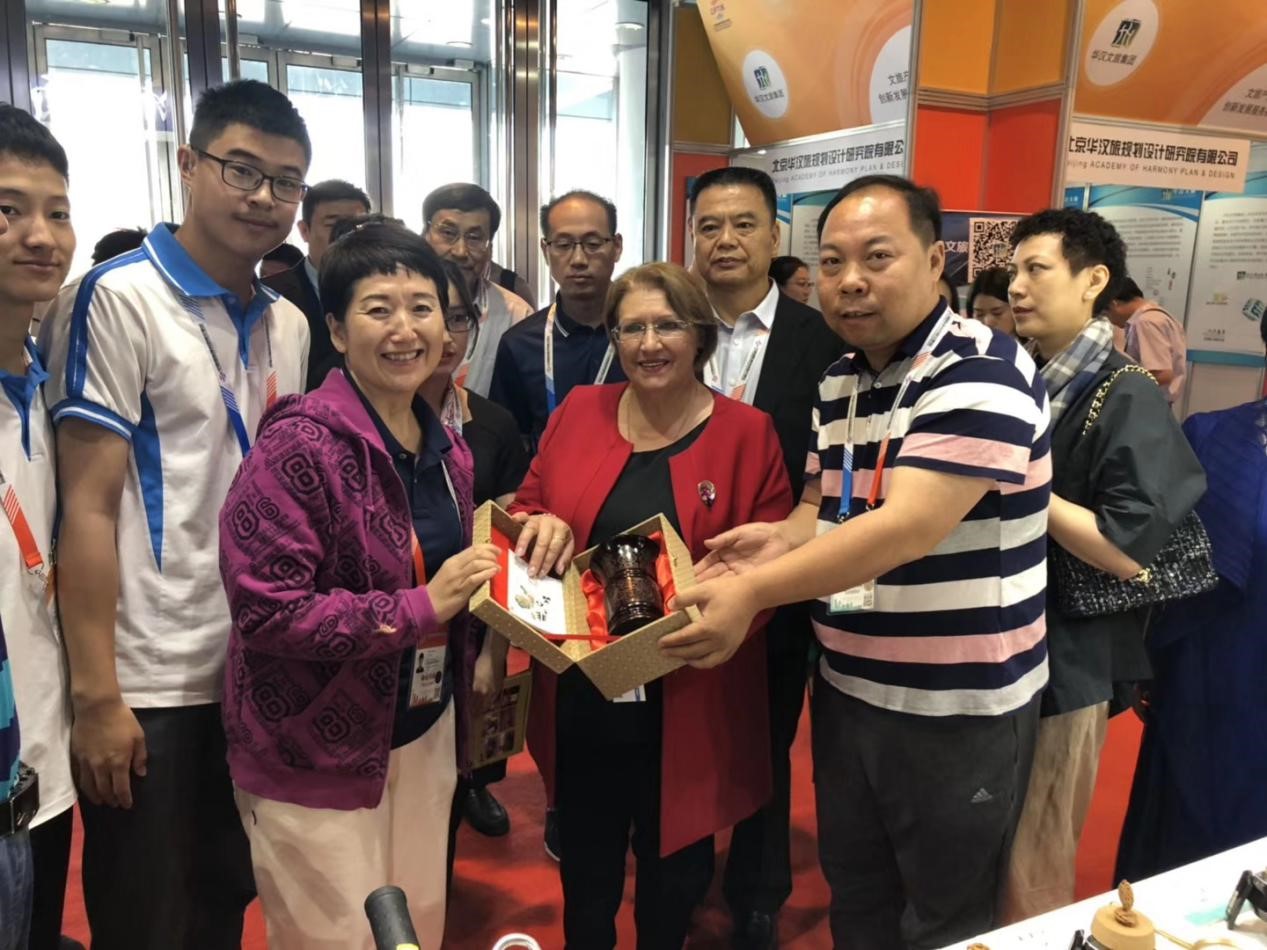 京交会期间马耳他前任总统玛丽·路易斯·科勒略·普雷卡到济南展区参观并合影留念,对参展产品显示出浓厚兴趣。两位同学积极与拉脱维亚,意大利,立陶宛等国外友人交流,在将残疾人专用乐器,轮椅等展品中蕴含的理念展现给外国人的过程中,提高了英语口语表达能力,增强了学生的创新意识。举行的电子商务、电商扶贫、一带一路中俄合作等论坛展现了当前电商发展现状、未来趋势,为学生指明了学习就业发展方向。