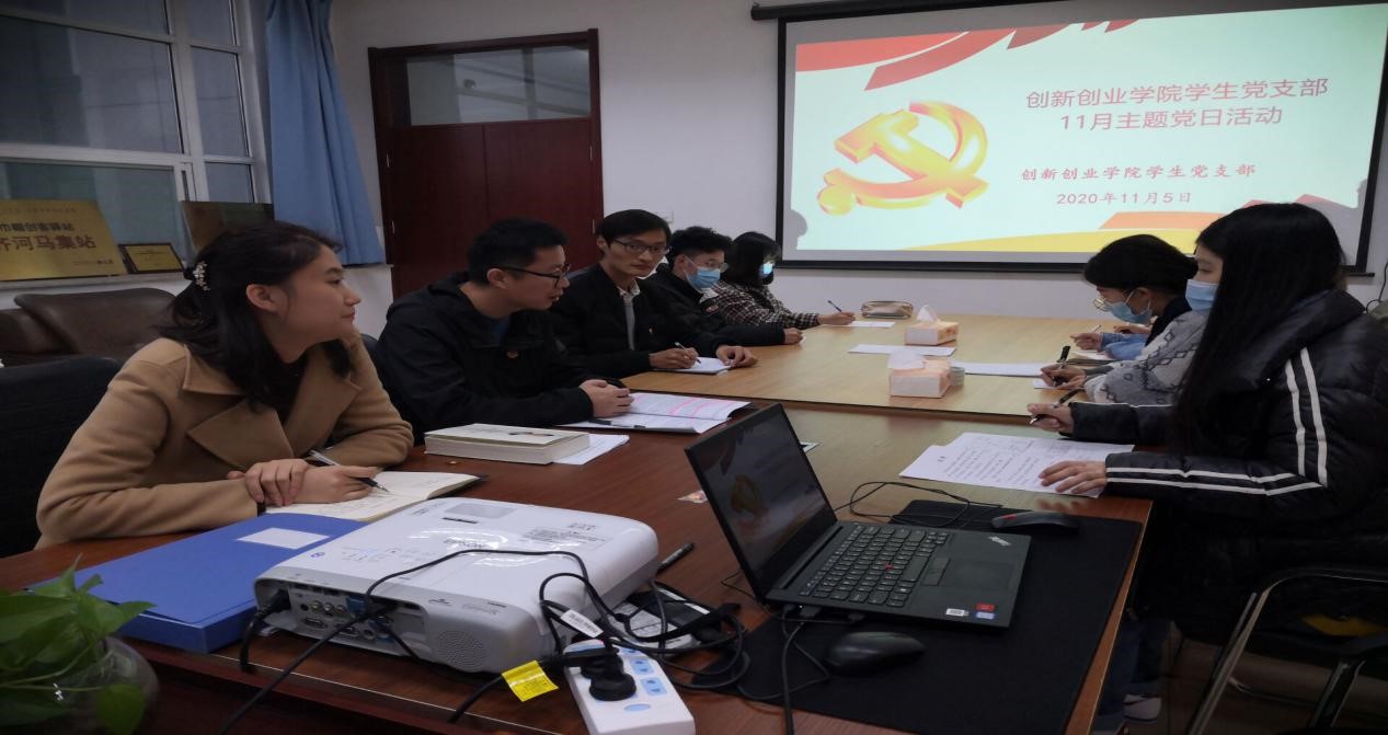 2020年11月5日,创新创业学院学生党支部组织学习十九届五中全会的重要精神,并根据全会精神,围绕“科技自立自强”展开主题党日研讨,大家联系实际,交流研讨,进一步强化了我院师生对党的十九届五中全会精神的理解与认同。