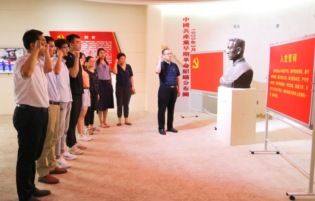 党员们先后参观了以“沉浮谁主问苍茫”、“救国救民谱新章”、“风起云蒸涌工潮”和“身心尽献大革命”为主题的四个展馆,一件件珍贵的历史文物、一幅幅记录峥嵘岁月的图片、一桩桩感人至深的往事,深深震撼着所有人的心,大家驻足观看,认真聆听,深入了解了革命先烈王尽美同志不顾安危、舍生取义,积极投身革命事业,参与创建中国共产党的光辉历程。参观结束后,全体同志在纪念馆大厅内面对鲜红的党旗,高高举起右拳,庄严地重温了入党誓词,饱满热情的铮铮誓言响彻纪念馆大厅。