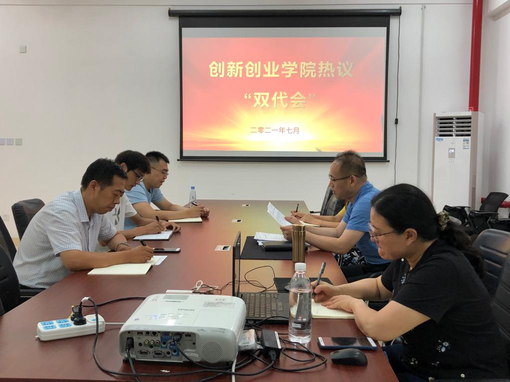7月18日上午,创新创业学院在求真楼314会议室组织教职工热议“双代会”。