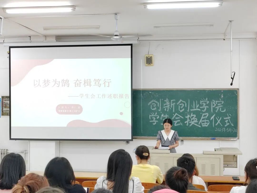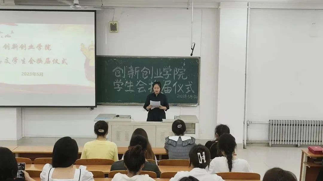 竞选结束后,学院举办团总支学生会换届仪式。辅导员韩雨晓宣读创新创业学院团总支学生会主席团及各部长的任命决定,并进行换届仪式致辞。她表示学生会要秉持“感恩,真诚,责任,敬畏”的理念,发扬求真务实的工作作风,全心全意为学院师生服务。新一届学生会干部应秉承上届的优良作风,并在此基础上开拓创新,以饱满积极的心态去开展工作,为学院的美好明天增光添彩。
