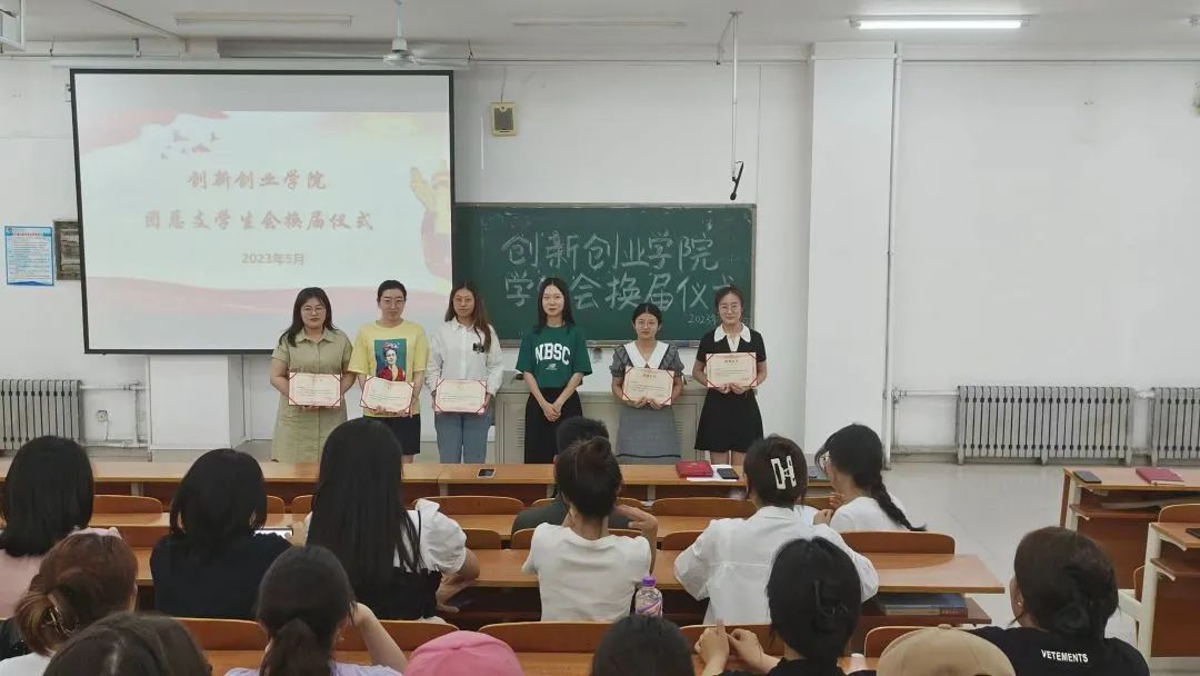 最后,辅导员韩雨晓为2022届主席团成员颁发荣誉证书,2022届主席团成员为新一届主席团成员颁发聘书。