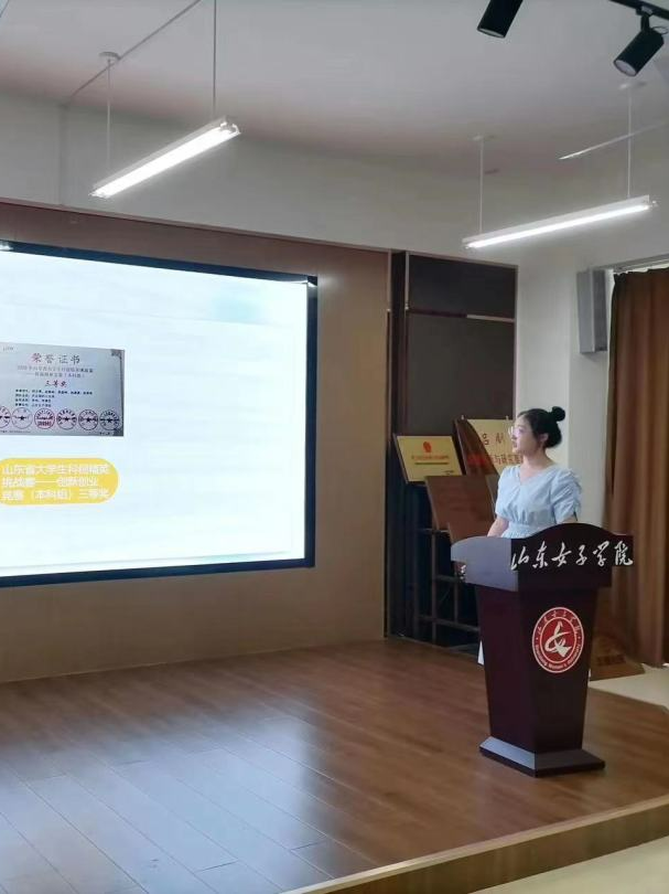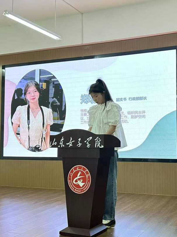 2022届学生会主席于翠民、学生团总支副书记董广鑫做工作总结,她们表示希望下一届学生会更加团结协作,创造双创更好的未来。
