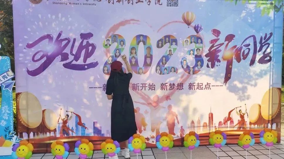 今年迎新工作中,创新创业学院定制特色迎新展板“签名墙”、入学合影相框,邀请新生及其家长合影留念,记录美好瞬间;制作畅想2035,眺望2050特色展板,通过邀请新生撰写心愿卡,引导其深入思考和回答“民族复兴,青年何为”;通过学院优秀考研学子、优秀毕业生展板,为新生树立良好榜样;精心为新生准备专属大礼包,定制学院专属扇子、笔记本、新生姓名签字笔、学长学姐手写暖心贺卡及礼袋,布置太阳花桌摆,寓意新生乐观阳光、欣欣向荣、积极向上,为迎新注入满满心意。
