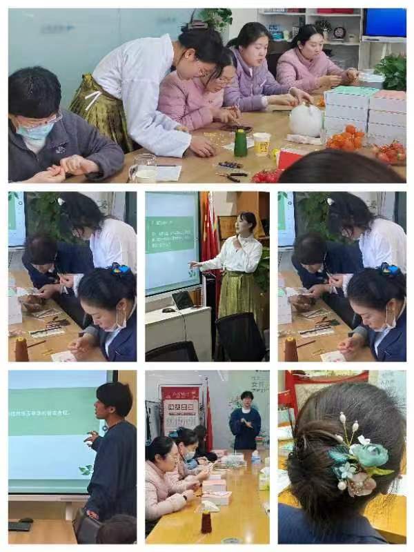 "文以载道,文以化人"。中华优秀传统文化是中华民族的精神命脉,也是中华文明的智慧结晶和精华所在。为积极践行习近平总书记积极弘扬中华优秀传统文化的重要指示,同时为女性同胞送上最美的三八妇女节祝福,3月8日,山东女子学院创新创业团队走进走进渤海银行济南分行,开展"绽放女性光彩,谱写绚丽华章"——中国传统服饰装扮造型赏析与手工花簪制作的“妇女节”专题活动。