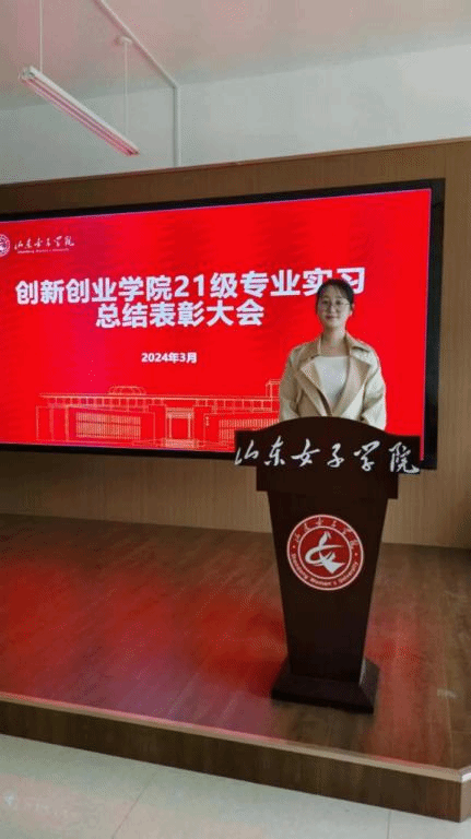 首先,创新创业学院院长李厚忠致辞,他表示,我院严格按照专业培养方案的要求进行实习前各项准备工作,实习地点分布在浙江义乌、聊城、济南等十余家公司。在21级同学和全体实习指导教师的共同努力下,圆满完成了专业实习的各项任务,达到了预期目标。实习期间,学院领导、实习指导老师多次到实习单位走访座谈,企业对我院实习生的评价普遍较高,充分反映出我院学生专业基础扎实、整体素质较高。今后我院将继续坚持“深化产教融合、校企合作,培养应用型、复合型、创新型人才,增强学生就业创业能力”的思路,办出特色,办出质量,高度重视学院特色建设、课程改革建设、师资队伍建设、实训基地建设,确保为我院学子打造更好的创就业平台。