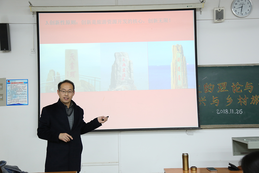 为进一步引导我院学生学习贯彻党的十九大精神,全面理解和把握乡村振兴战略,11月26日,在博文楼103教室,创新创业学院院长李厚忠为同学们作了以“十九大的理论与实践——乡村振兴与乡村旅游”为主题的专题讲座,学院全体学生聆听了讲座。